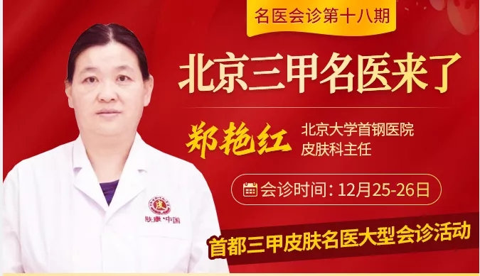北京大学首钢医院皮肤科专家郑艳红主任,2021年12月25日-12月26日,即将莅临肤康,北京专家+肤康专家,阵容强大,机会难得!